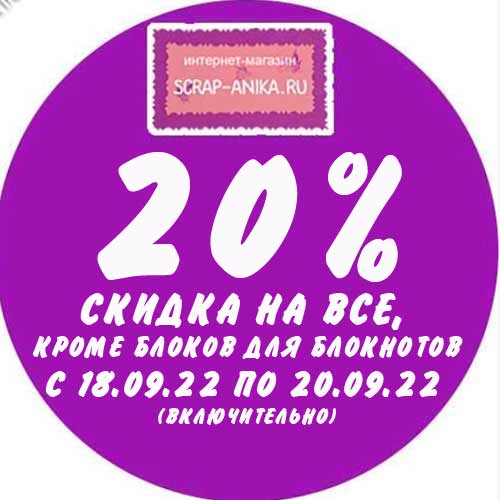 Объявляется скидка 20% на всё, кроме блоков для блокнотов.