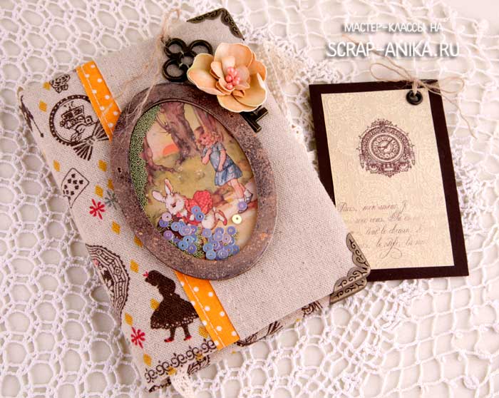 Наверное, любой из Вас задумывался о скрап-работе по теме "Алиса в Стране Чудес". Сегодня хочу немного познакомить Вас с находками и идеями мастеров по этой теме, элементами и небольшим обзором блокнотика А6 формата.