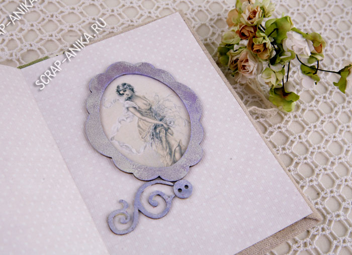 Форзацы я тоже украсила карточками и рамочками:
