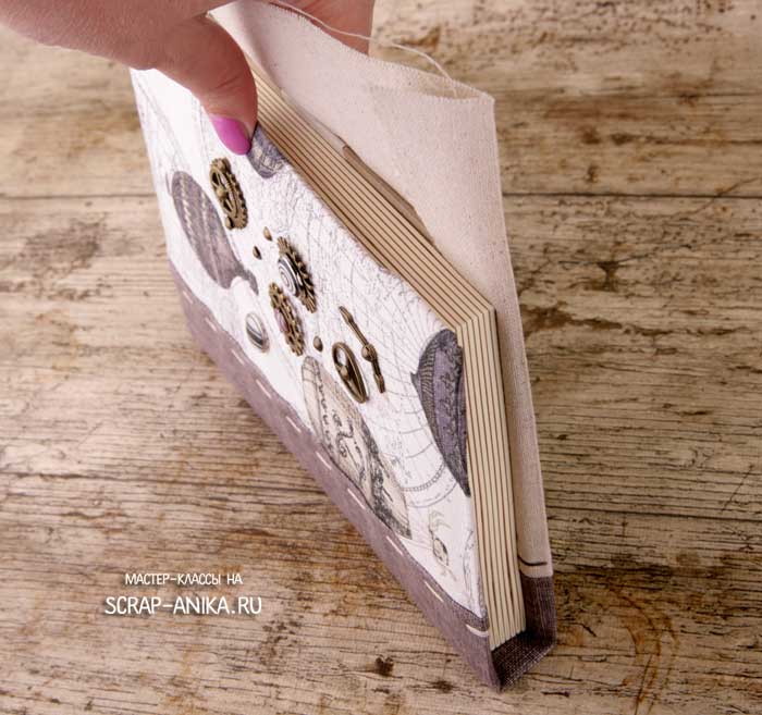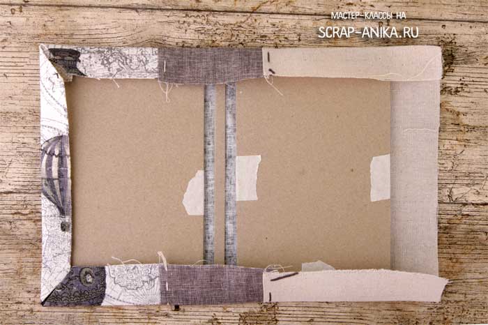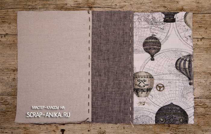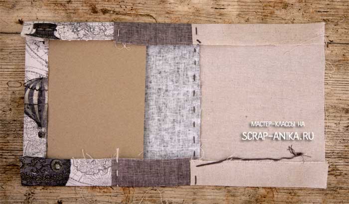 Вкладываю в текстильную обложку обложки из картона, подушками поворачиваю к ткани.