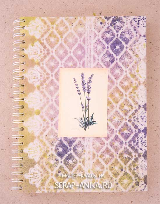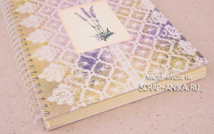 Последний штрих - наша картинка с лавандой (приклеить). И блокнот готов!