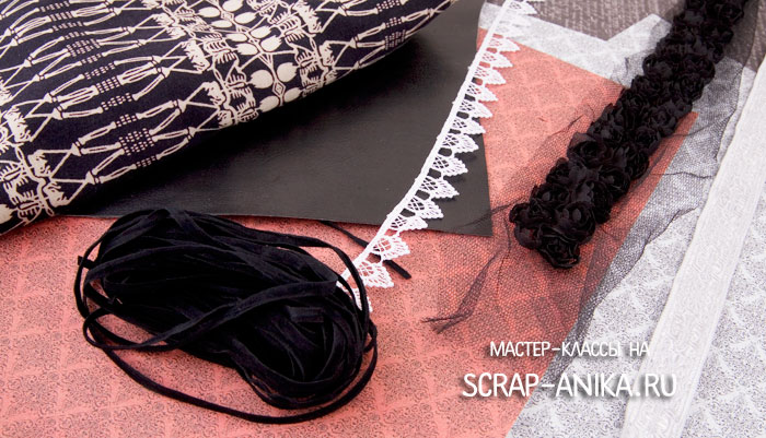 Материалы: кружева, бархат, кожа, шелк, шнуры, тафта, органза.