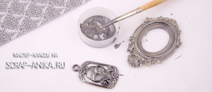 Вы наверное заметили, что подвеска с черепом у меня только бронзовая. А рамочка кремовая и пластиковая.