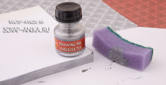 С помощью губки и серебряных чернил я тонировала торцы блока в серебряный цвет.