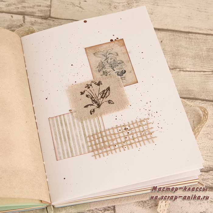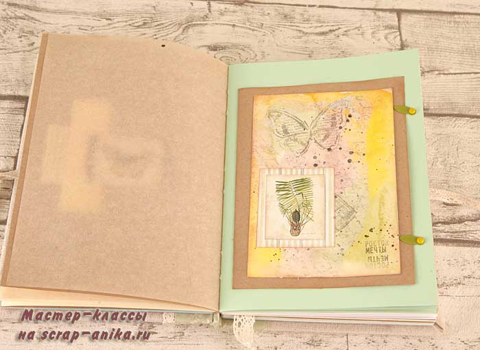 У этой странички есть своя "изюминка" - штампик на крафт-бумаге остался в свободном полете ;)
