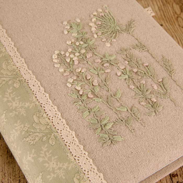 Обложка этого арт-бука - вышивка в техниках гладью и французским узелком на льне бежевого цвета.