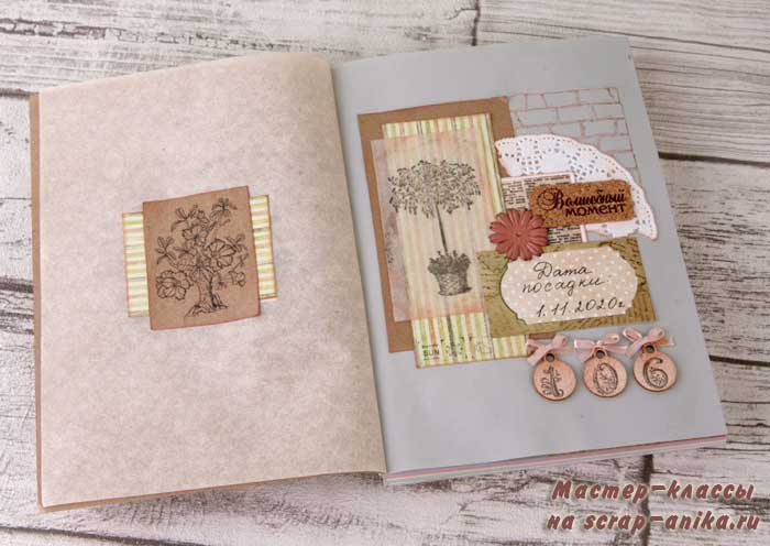Концепция артбука - цветовая гамма пастельных тонов, обязательное использование крафт-бумаги, пергамента и ажурной салфетки.