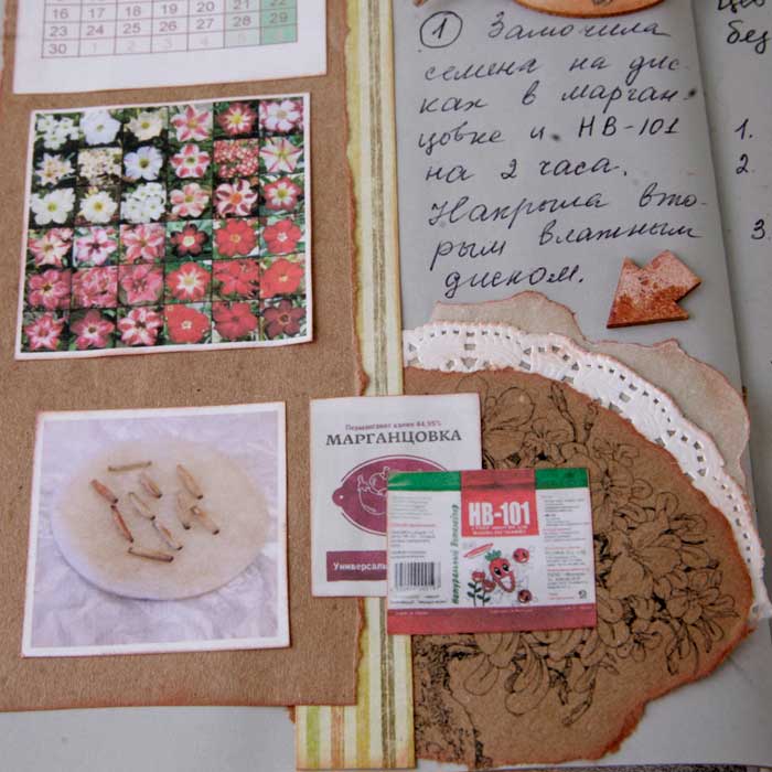 Странички разлетаются по просторам интернета и я решила, что этот артбук оставлю на сайте в постоянном доступе и буду дополнять по мере создания страниц. Для адениумоводов могут пригодиться комментарии, а для любителей скрапа - оформление страничек. Правда, обложка будет только тогда, когда зацветет первый цветок.