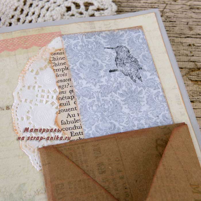 Этот прием я уже использовала - отрезала клапан от конверта и использовала его в работе.