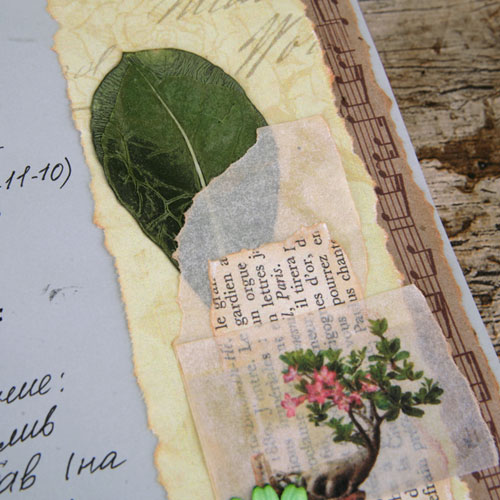 На одной страничке Вы можете насчитать 5-6 видов бумаги. А на всём развороте я насчитала 10 видов (без учета фотографий). В артбуках именно бумага - главный инструмент для создания многослойности.
