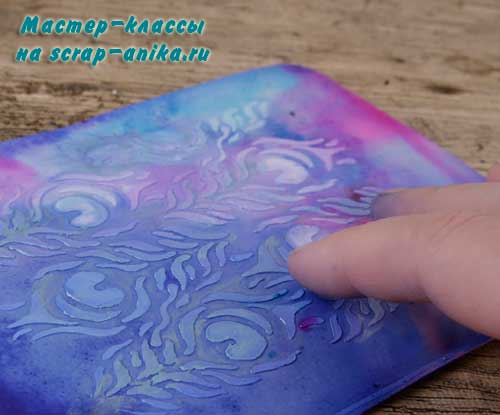 Текстурную пасту на акриловой основе можно наносить сразу на странички (как белую, так и смешанную с акриловой краской для придания ей цвета) . Мастер класс по нанесению текстурной пасты.