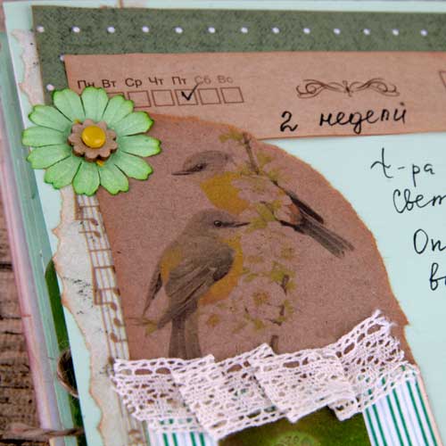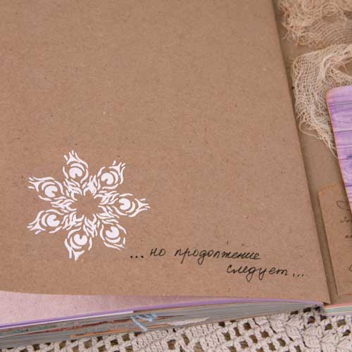 Украшая развороты, оставила крупные мотивы. Здесь главное - не перегрузить разворот, поэтому один крупный блок и не более :)