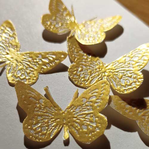 Для этого разворота сделала бабочек из серебряной кальки в технике эмбоссинг.
