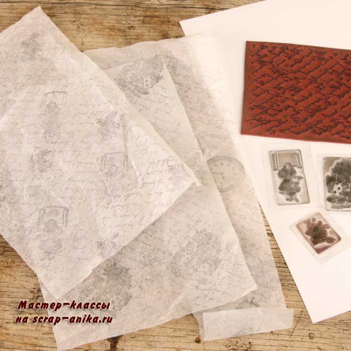 На готовые фоны наклеила бумагу тишью с отштамповкой. Мастер класс, как это сделано, можно посмотреть здесь.