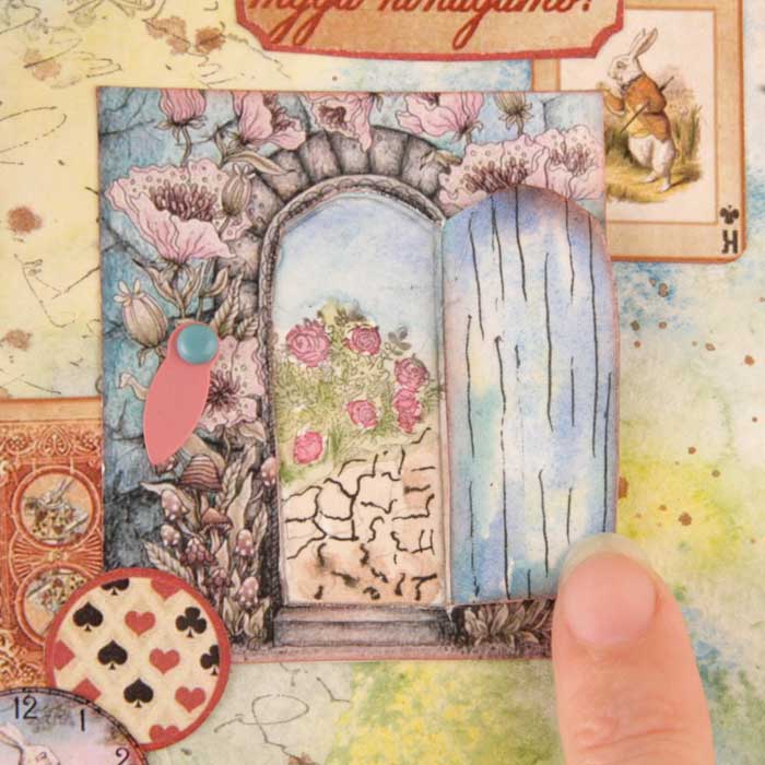 Сама дверь и выход в Сад Страны Чудес - акварель. Кстати, розочки я не рисовала - это готовый разукрашенный штамп :)