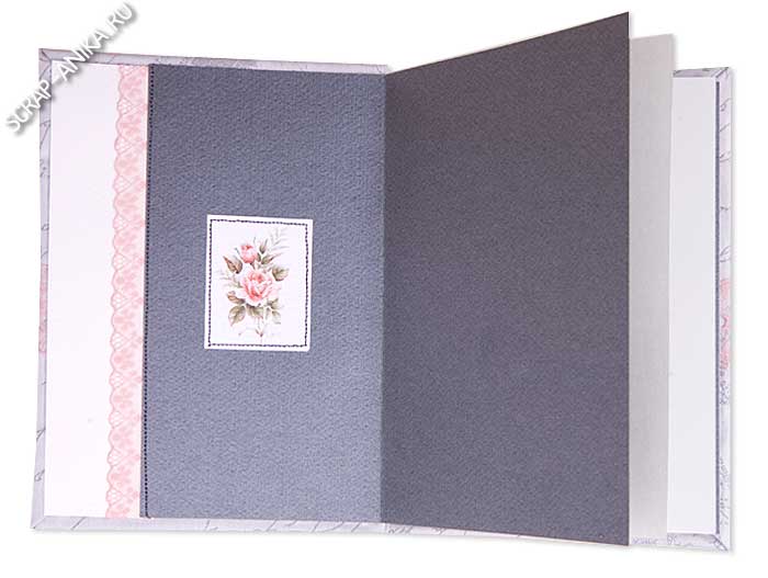 Для оформления форзацев использовала кружева и два вида бумаги: