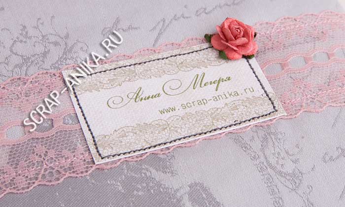 Этикетку распечатала на той же бумаге, акцент - еще одна розочка в цвет :)