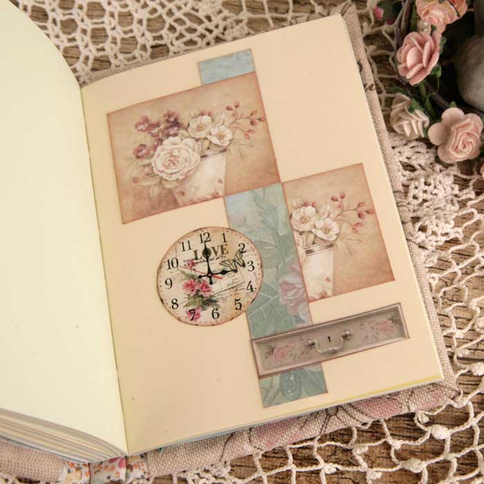 Странички - коллажные из красивой бумаги пастельных тонов.