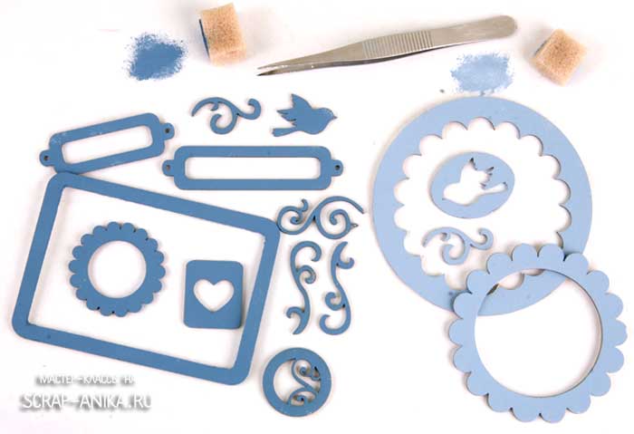 3. Окрашиваем детали-чипборды красками 1 и 2 как на фото. Обратите внимание - для каждого набора индивидуальная покраска. Перед покраской тщательно размешайте краски. Одна из рамочек в комплекте - подарок:)