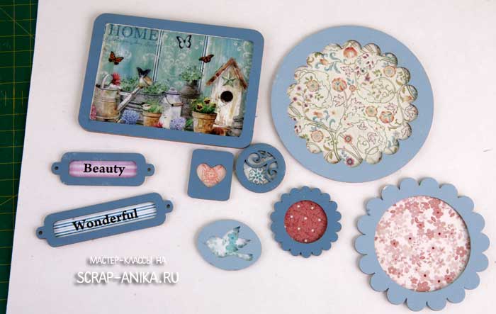 6. Остальные картинки приклеиваем каждую к своему чипборду (с его обратной стороны).