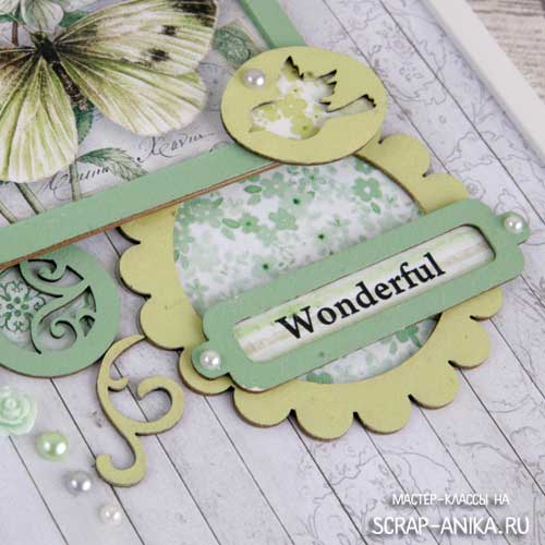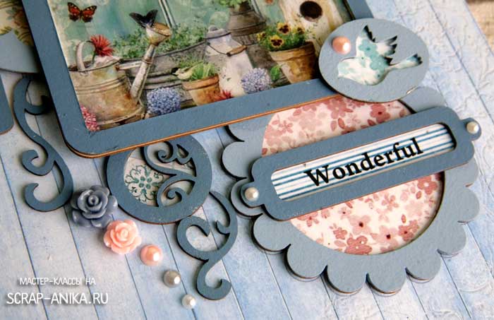 8. Приклеиваем остальные чипборды-завитки и птичек.