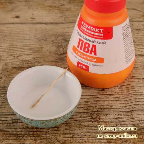 Для приклеивания я буду использовать клей ПВА, разбавив его водой в соотношении примерно 1:3.
