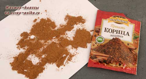 Дальше - рядом с воском наношу пятнами клей ПВА и посыпаю эти места корицей.