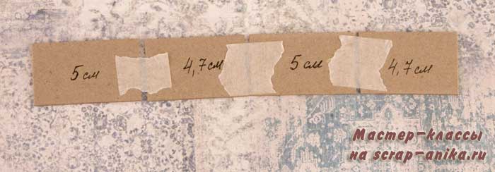 Материал - переплетный картон толщиной 1,5 мм. Детали : основа 5х5 см (нужна 1 шт.), боковушки - 3х5 см (2 шт.) и 3х4,7см (2 шт.). Если Вы берете готовые наборы, то придется 2 боковушки подрезать на 3 мм, так как в наборах идут все стороны 3х5 см.