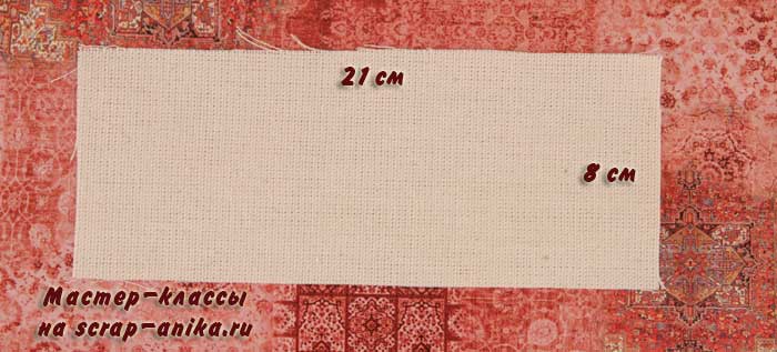Следующий материал, который будет нам нужен - двунитка, примерно 1х1,5 метра. Отрезаю кусок размером 8х21 см.