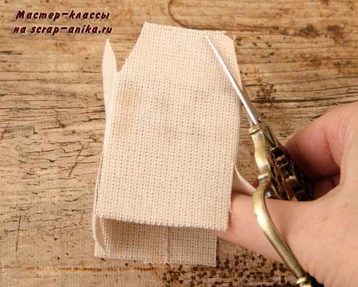 Со стороны донышка срезаю ткань углом близко к уголку коробочки. Но не углом в 45 градусов, как мы привыкли, а меньше - будем приклеивать клапаны внахлёст.