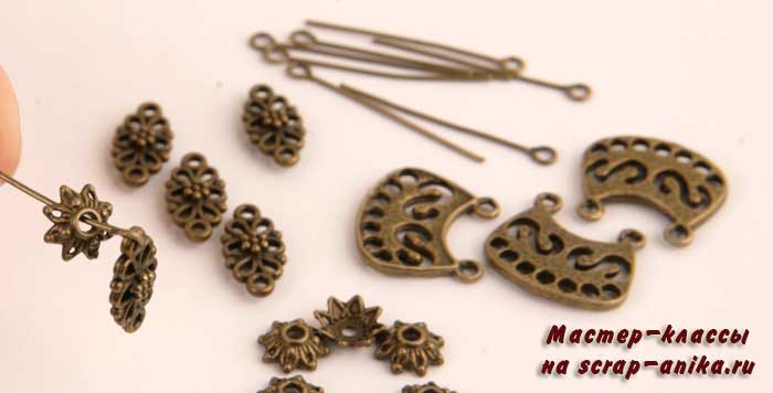 Кроме подвесок можно взять готовые ручки или металлические бусины - здесь всё зависит от Вашего воображения.