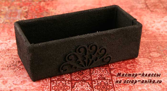 Пропитала ящик черной акриловой грунтовкой. Работала в одноразовых перчатках. Просушила.