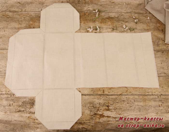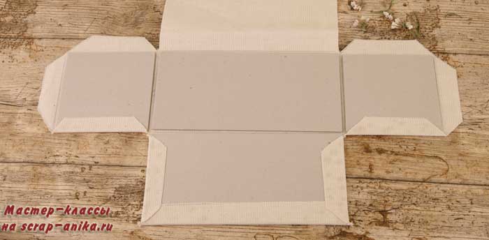 Начинаю склейку. На ткань приклеиваю донышко, боковые стенки и переднюю стенку. Приклеиваю клапаны как показано на фото.