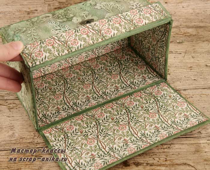 Подбираю красивую бумагу (эта у меня из коллекции 31_27) и обклеиваю ей внутренние стороны коробки.
