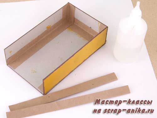 5. Сгибаем полосы пополам и проклеиваем ими внутренние углы полученной конструкции для укрепления.