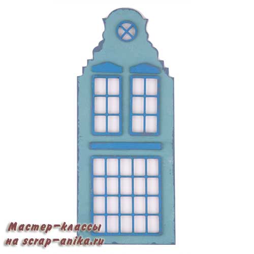 2. Приклеиваем декор на фасаде. Начинаем с окошек - для них есть отверстия и легко найти места для приклеивания. Совмещаем детали четко по отверстиям, клеим на места. Приклеиваем остальной декор. Разметки для них нет, но легко ориентироваться по окнам. Можно добавить еще тонировку красками. Фасад готов.