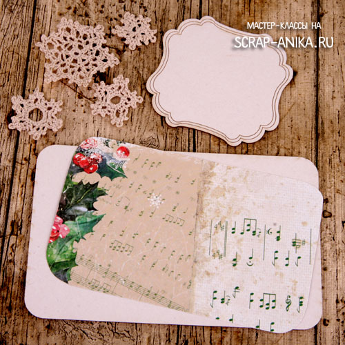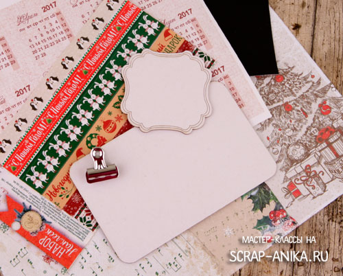 1. Можно самостоятельно вырезать из пивного картона основу 9х14,5см и площадку для сетки 7,5х7см (я порезала лазером и теперь есть готовые детали). Из скрап-бумаги вырезаю основу на 5 мм меньше с каждой стороны основной площадки. Старайтесь кроме основной бумаги использовать дополнительную, марки, стикеры, наклейки. В скрапе всегда ценится многослойность.