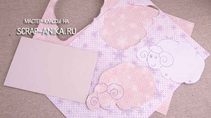 Итак, вырезаем шаблон. По шаблону вырезаем основу из пивного картона и из декоративной бумаги детали на лицевую и оборотную стороны (не забывайте - одна деталь получится в зеркальном отображении. Клеим лицо и оборот на картон. Получили заготовку для декорирования. У овечки будут контуры, которые тоже нужно перенести на бумагу. Глазки не рисую.