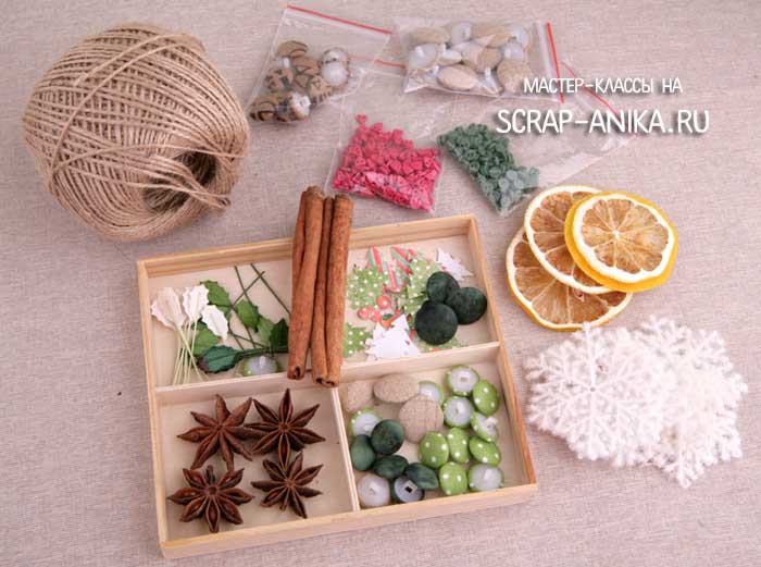 коробочка бадьяна, шпагат из джута, палочка корицы, сизаль - всё из эко-набора