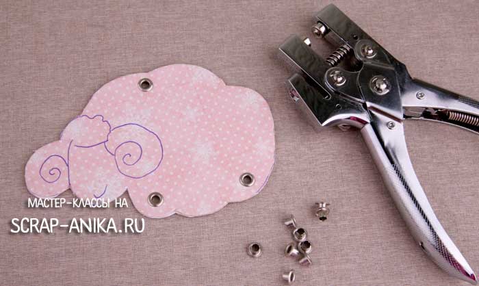 Устанавливаю люверсы для крепления ножек и нитки для подвешивания игрушки. Если у Вас нет установщика люверсов, ничего страшного - можно пробить отверстия хорошим дыроколом, только тогда бумагу в этих местах проклейте надежно.