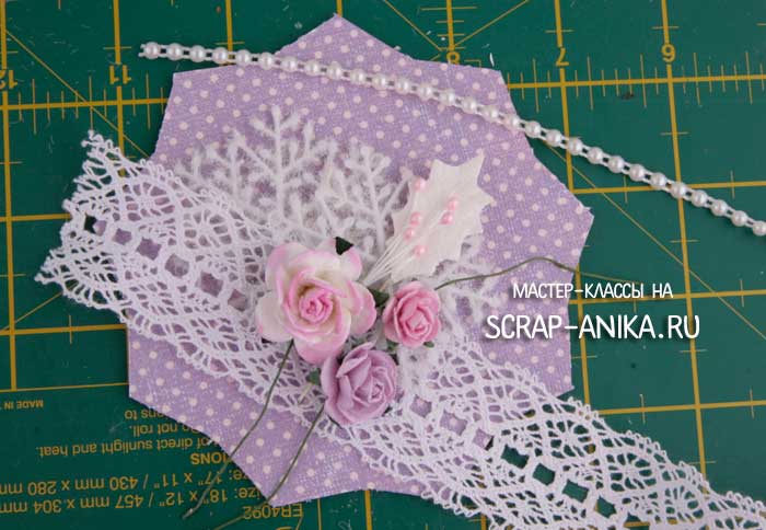 Пришлось заменить крупные цветы на более мелкие, добавила снежинку, кружево разделила вдоль.