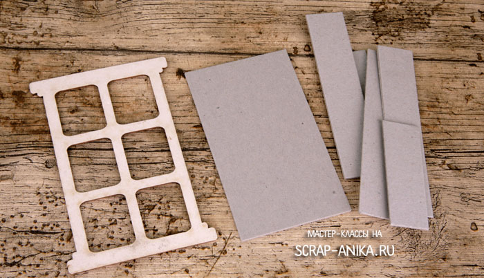 Мастер-класс покажу на самом сложном - шейкере 64 (большое окно). Из переплетного картона вырезаю прямоугольную основу (6,5х11 см), и полоски шириной по 2,5 см для бортиков и центральных перемычек, так как глубина моей игрушки будет 2,5 см.