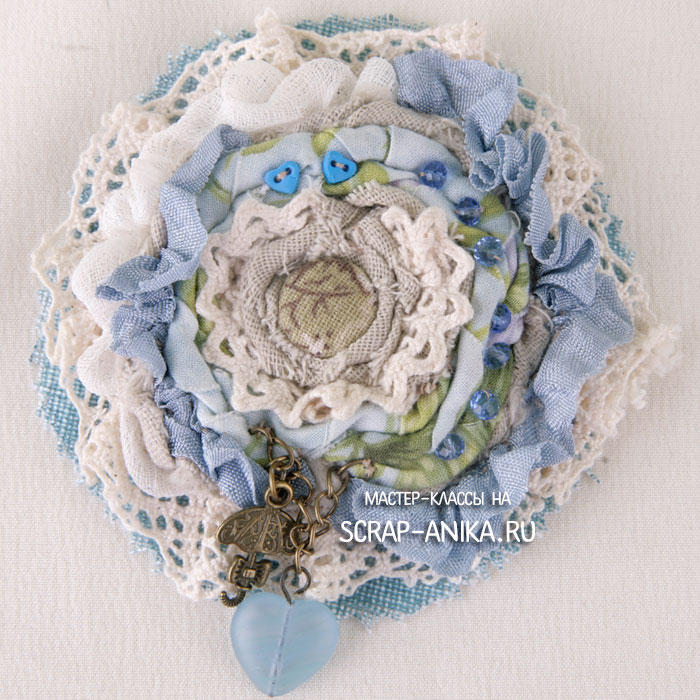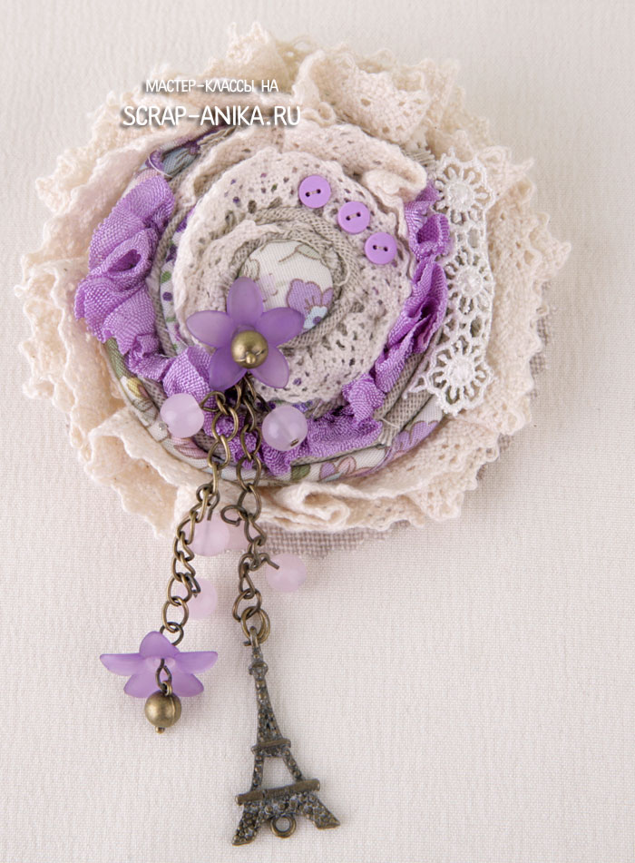 Это творческий процесс, поэтому не пишу, где надо вставить кружавку, а где ленточку - каждая брошь становится неповторимой даже у одной мастерицы :)
