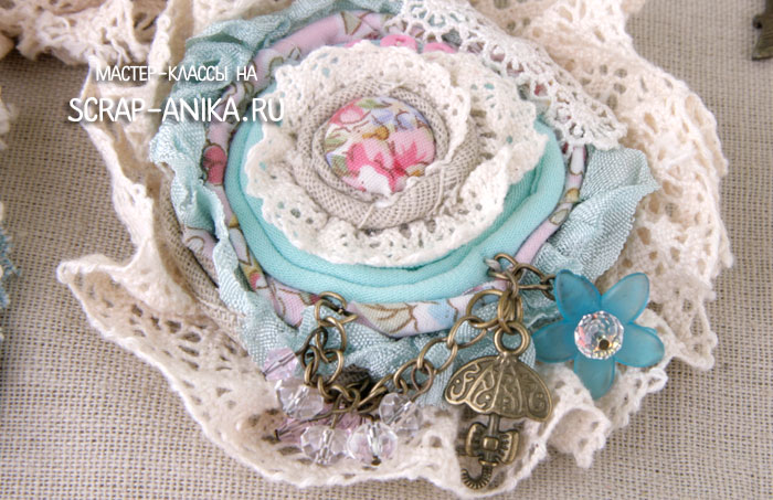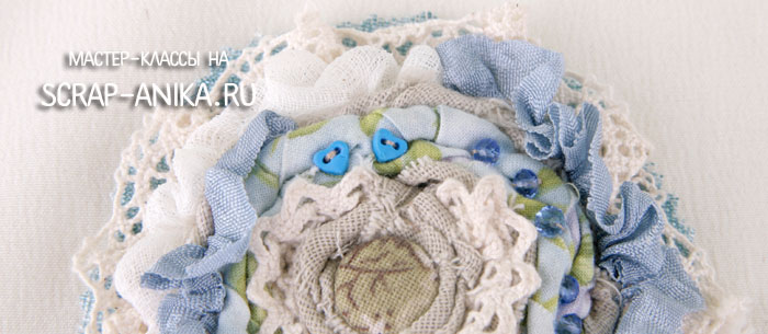 Главное в таких текстильных брошах - много мелких деталей. Именно детали притягивают взгляд зрителя.