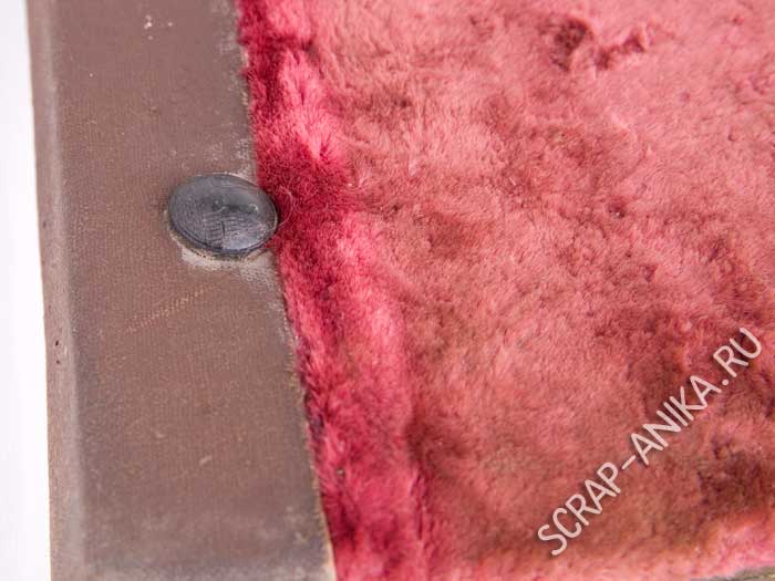 Обложка - красный бархат. Винты - металлические. Были такие в продаже.