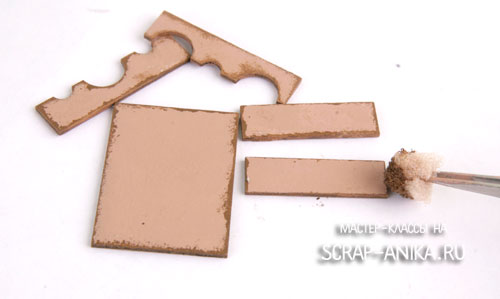 1. Окрашиваем базовой краской все детали с двух сторон. Края обрабатываем тонировочной краской.