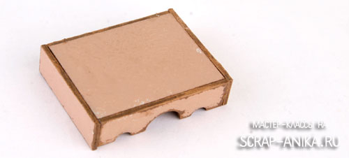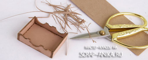 3. Собственно, ящик уже готов. Но добавим маленький штрих. Нашинкуем маленький кусочек крафт-листика (получим тонкую стружку). Она создаст объем и бОльшую реалистичность бутылочного ящика.