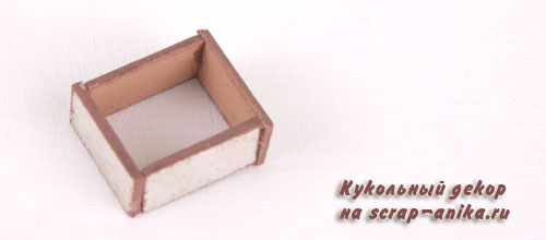 2. У Вас 4 одинаковых детали - это стенки ящика. Склейте их так, чтобы две детали были внутри, а две снаружи каркаса. Окрашенные поверхности должны быть внутри ящика.