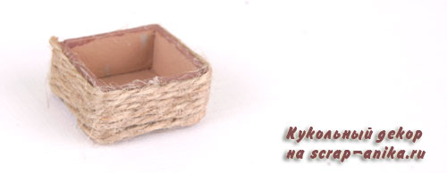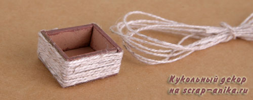 4. Наносим клей на внешние стенки ящика и обматываем его тонким шпагатом по кругу.