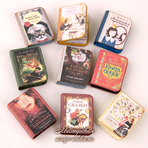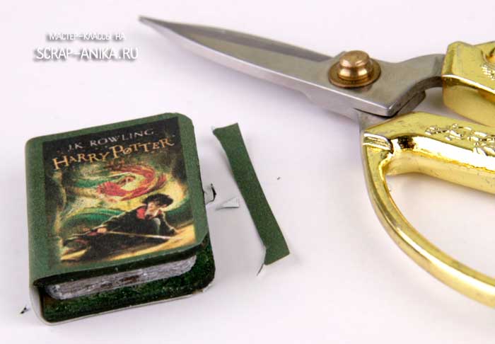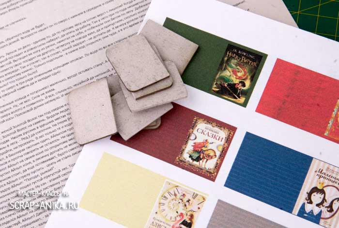 - распечатка для обложки книги (размер одной 5,5х3 см). Если не на чем распечатать, подберите подходящую бумагу с мелким рисунком;